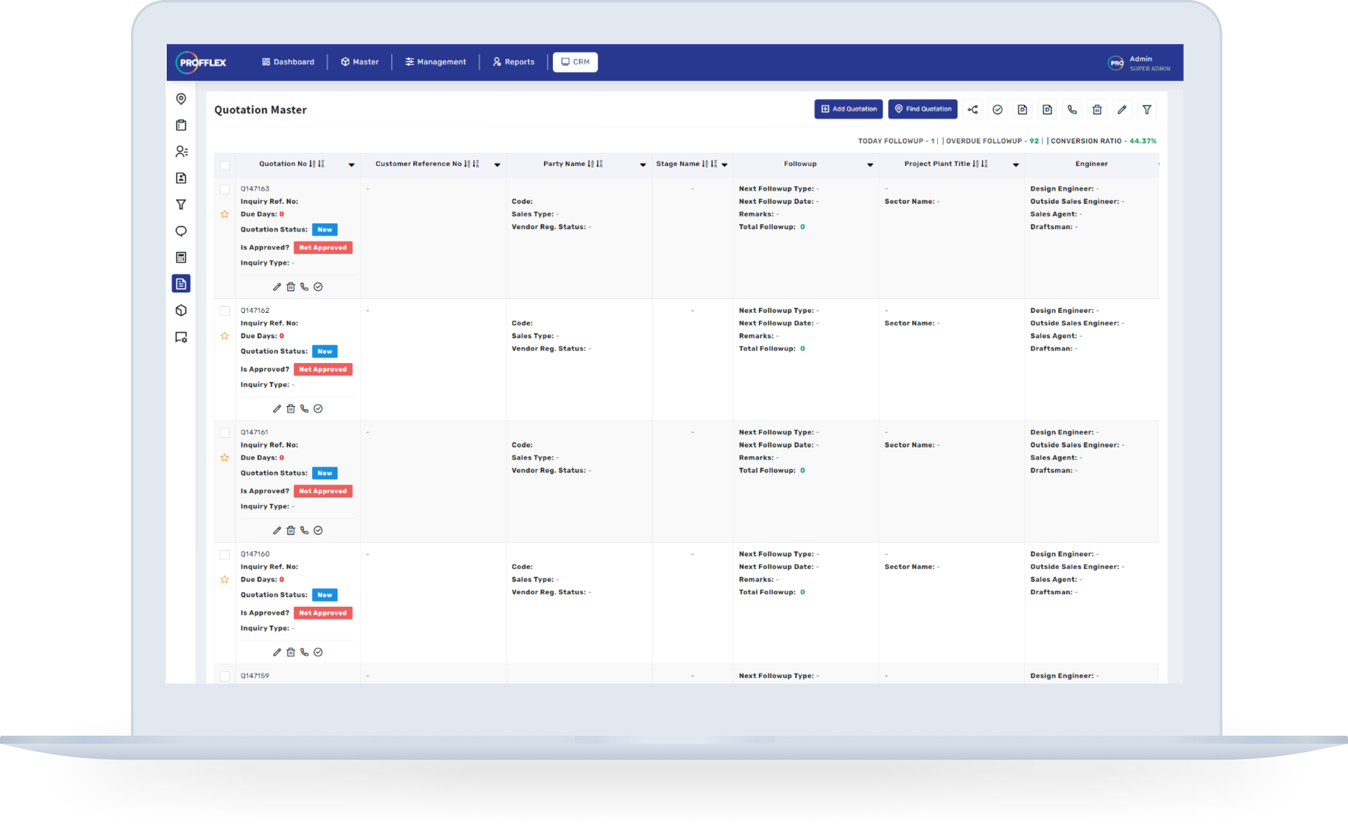 Profflex is designed to go beyond mere production management. With its built-in Customer Relationship Management (CRM) features, Profflex enables manufacturers to manage customer relationships more effectively and efficiently. The system provides a comprehensive suite of tools that cover every aspect of the customer lifecycle, from lead generation to order fulfillment.