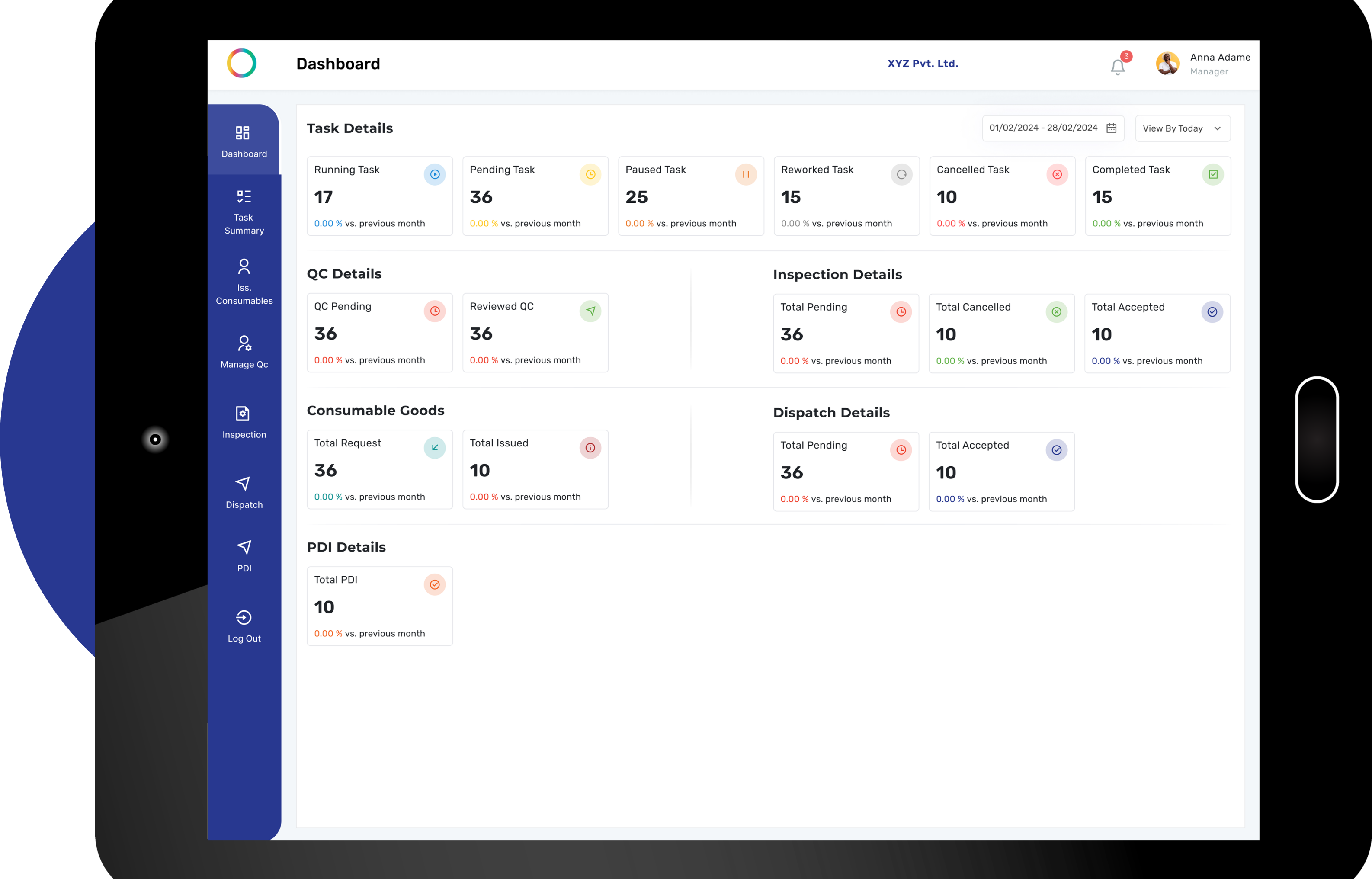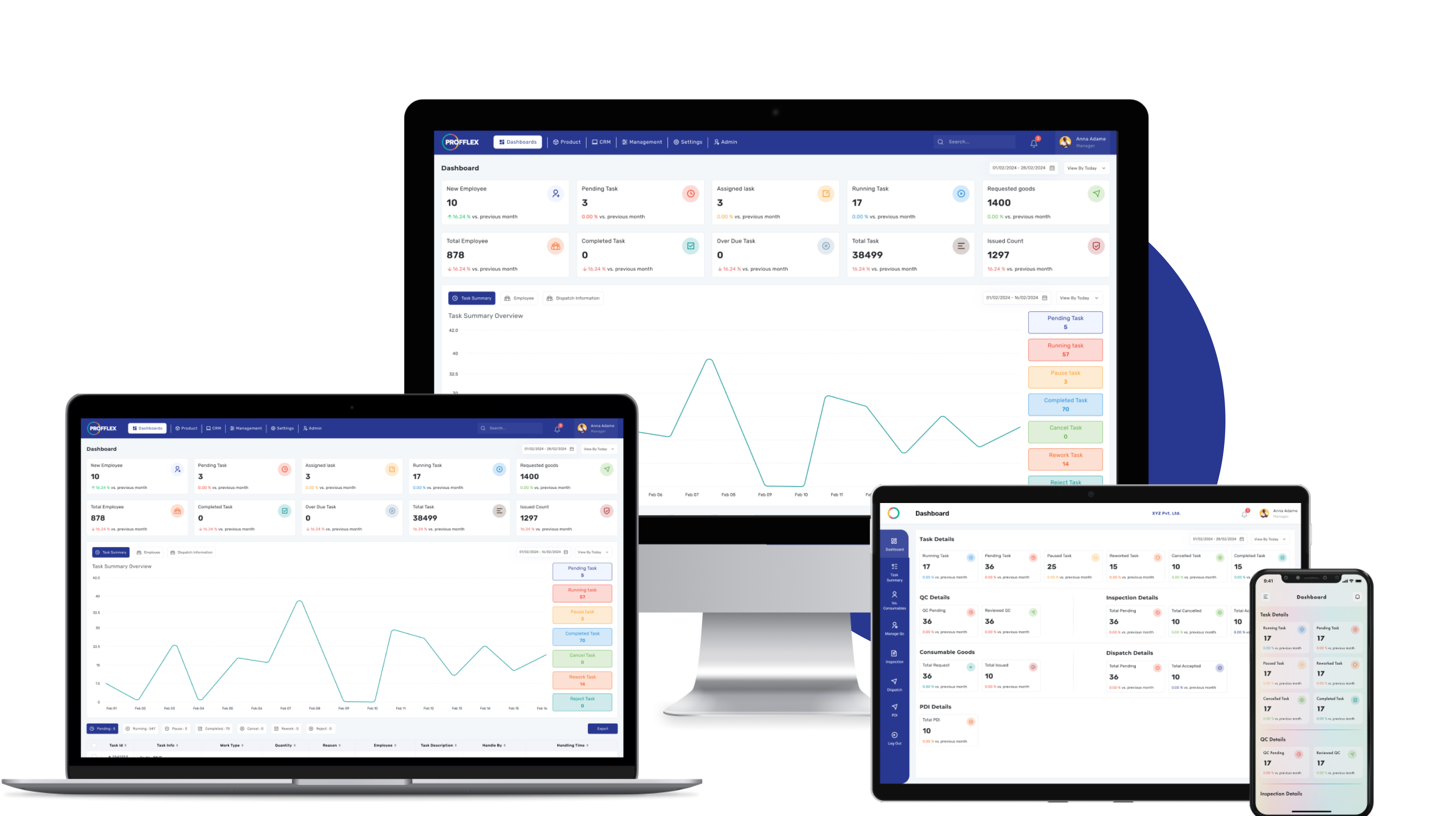 PROFFLEX is operational on Cloud based Web platform for Superior management and Tablet based android application for Production floor employees.