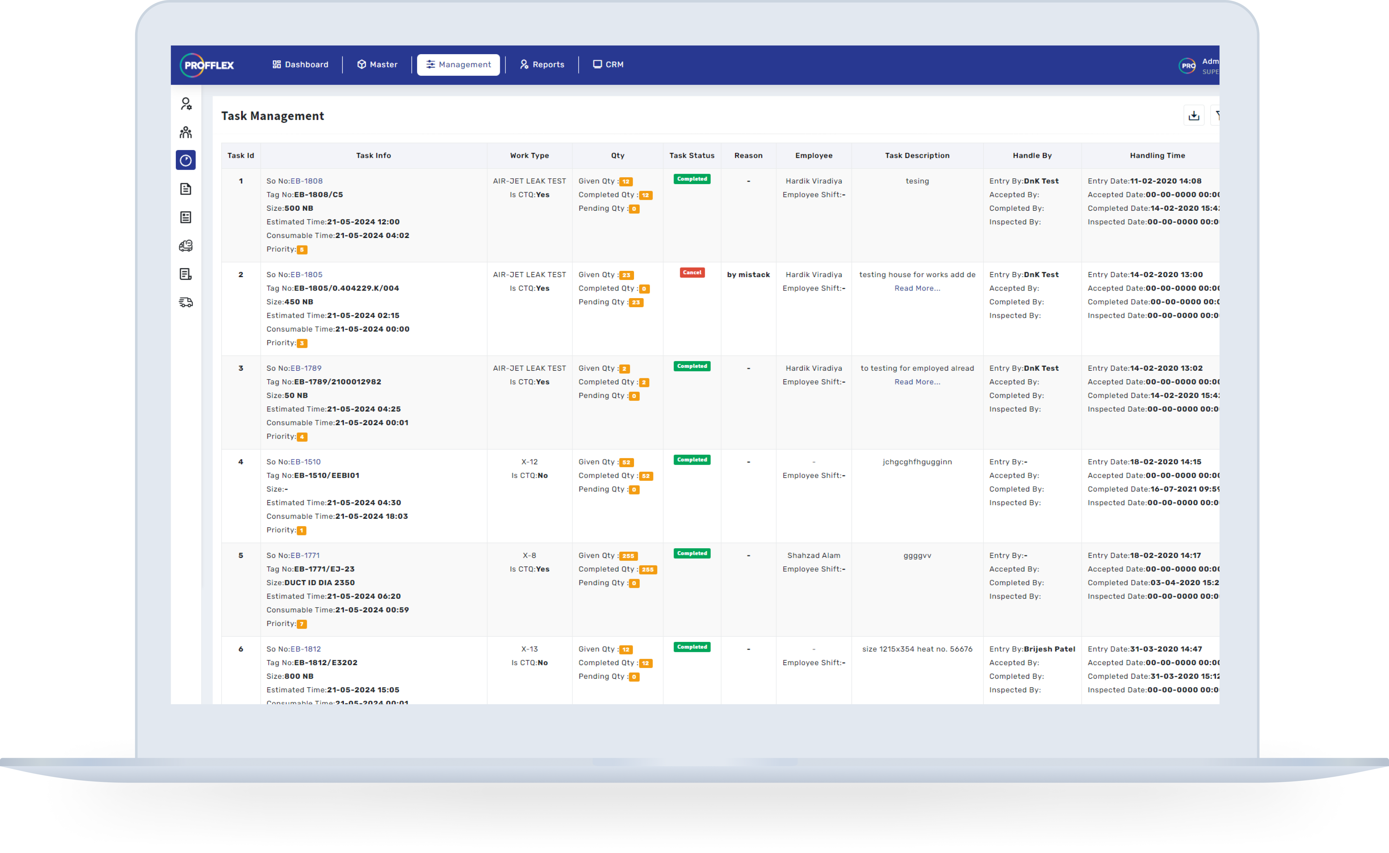 Profflex Manages Manufacturing Processes from Job Creation to Final Delivery, Offering Complete Visibility, Task Management, Detailed Reports, and Advanced CRM capabilities.
